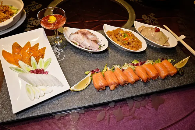 油雞鮭魚烏魚子都是我愛吃的餐點, 海哲皮看來也不錯