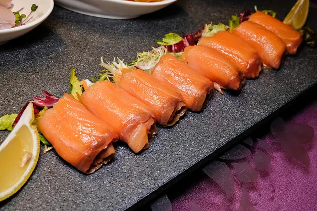 冷燻熟成鮭魚, 中間包點生菜吃來更健康