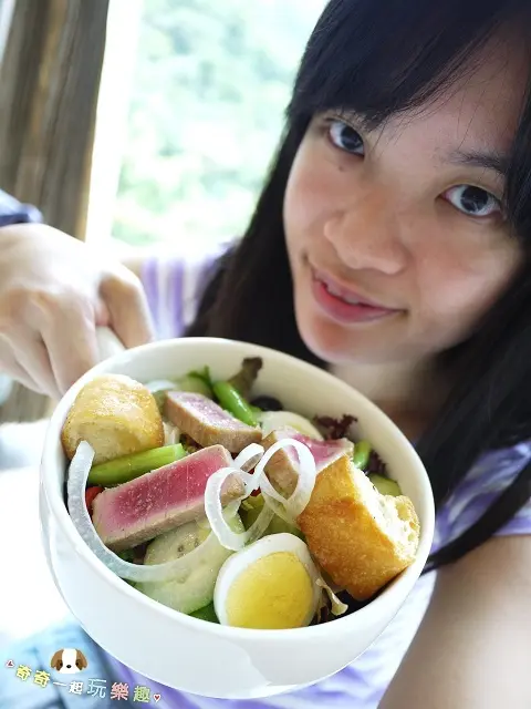 這份沙拉擺盤真的是漂亮到捨不得下手,