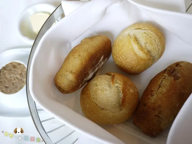 點綴的法國麵包,用料精緻用心,特製醬汁更讓蔬菜顯得鮮甜,