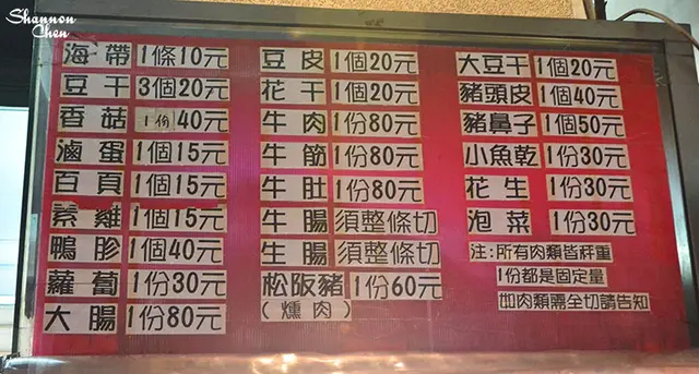 滷味的價位表請看,真的一般而言不是那麼的平價