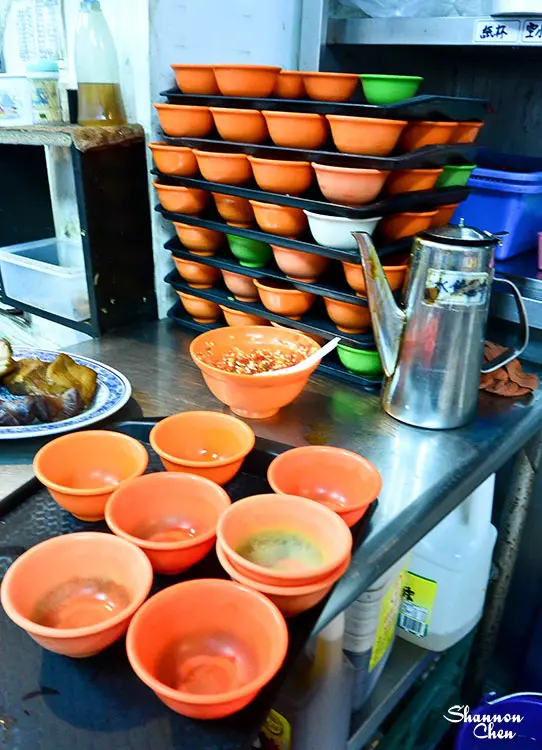 一旁有許多碗碟再一起的都是店家幫客人用好的醬而已,可以自行放個辣椒、蔥...等等