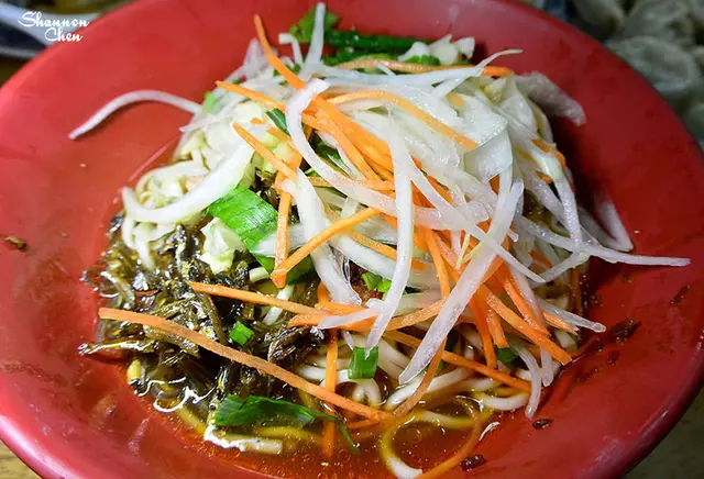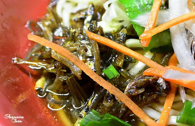 一口後發現味道差不多呢只有一點點不衣樣就在料上面不太一樣,這吃起來味道真的還算不錯,酸酸帶著一點辣和小魚乾的香氣