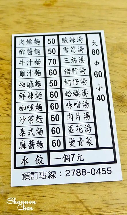 肉燥、炸醬、椒麻50元、牛汁麵70元、其他60元