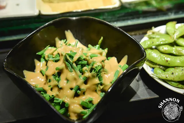 使用LINE APP訂位招待的小菜(活動不知道到什麼時候),這胡麻龍鬚菜吃起來很香很順口,一下就被我們兩個解決了!