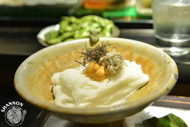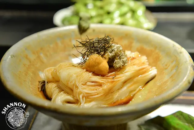 刀工極細的山藥細麵上方搭配了水海膽和昆布