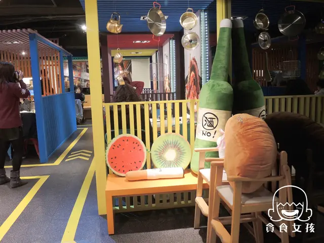 張君布帳馬車佈置風格也有抓到韓式風格的元素在,像是一進門那個水果墊,有陣子也是造成搶購轟動!還有地板鮮明的指引路線,和色彩鮮豔的欄杆都很引人注目