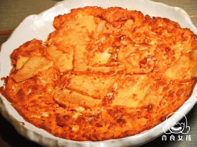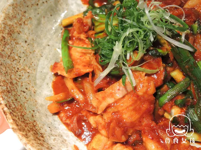 火辣辣指數:▲,泡菜豆雞其實就是把泡菜和豆腐融入煎蛋中,這道露易絲和友人們都很喜翻,咬一口,那蛋香中又帶點泡菜味,嚐起來不是完全滑嫩,而是含有泡菜的脆感,微微辣滋味的蛋酥口感,表現很不錯!真心推薦!