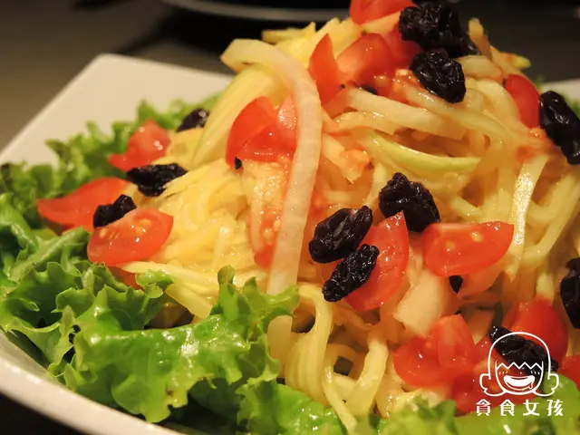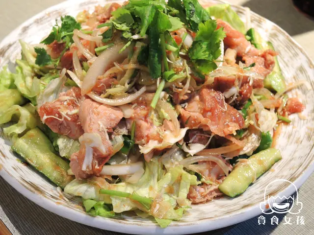 露易絲蠻喜歡這道!不只是單純青木瓜絲,還有加入洋地瓜切絲,再和百香果醬一同攪拌,最後灑上番茄丁和葡萄乾,酸甜酸甜口感和那濃郁的百香果香,女生們一定很愛這道開胃菜!爽口又能美容。
