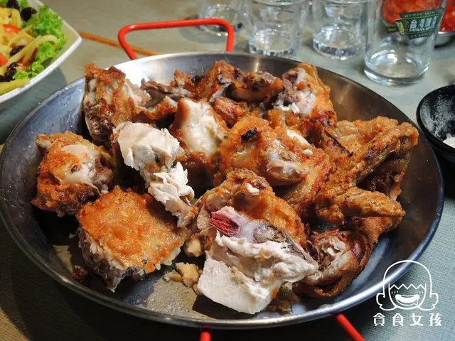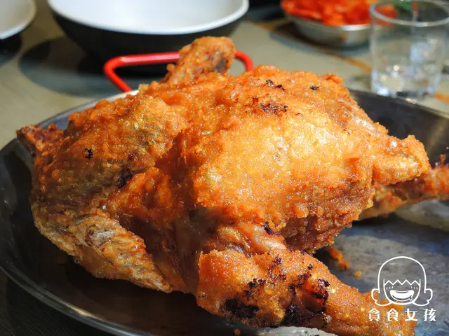 就是整隻雞拿下去轟炸,不論是聽起來還是看起來都很過癮!不會太過油膩,雞肉肉質也保有雞汁,沾點胡椒,外表酥皮更是香脆!店員會協助幫忙剪開,一轉眼整盤肉都被拿光XD