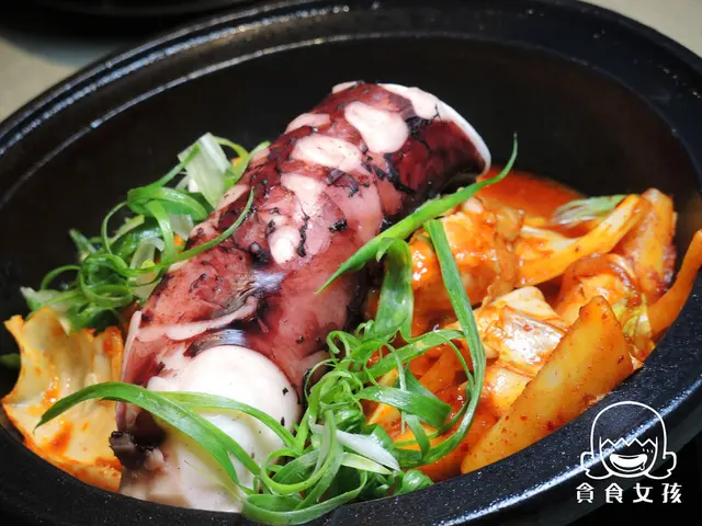 看名字還以為是哪個動物那麼多腳成的一道餐點,但其實是裡頭包含了章魚腳和雞腿肉,這樣也超過10隻→好多腳章魚腳帶著嚼勁口感,而雞腿肉軟嫩,又是一道衝突美的料理,表現挺不錯!