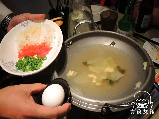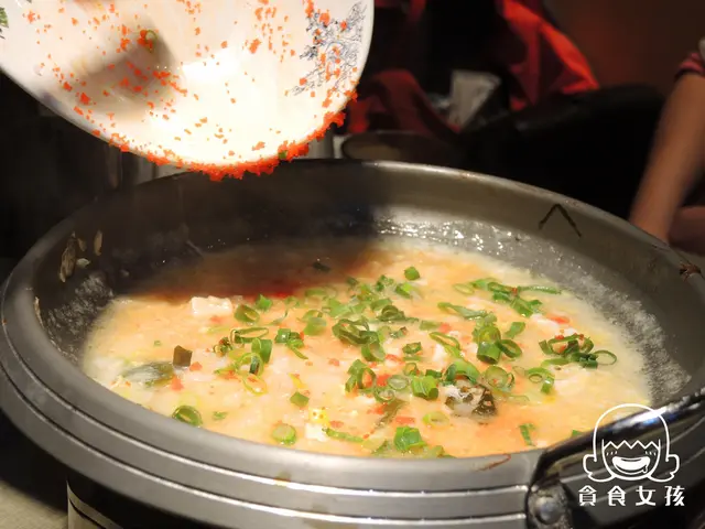 這是利用剛剛牛肉湯底煮的粥,特別的是張君布帳馬車是用蝦卵提味,而不適一般火鍋店使用的明太子,最後加上蛋和蔥花,又是一道黃金炊粥。