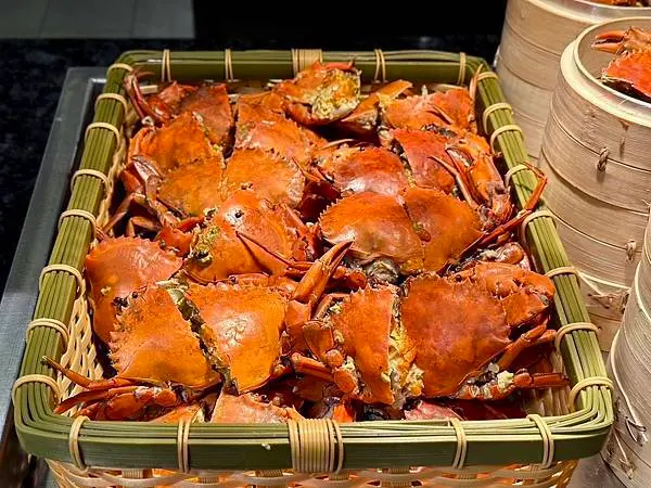 剛出爐熱氣奔騰的蒜蓉松葉蟹,