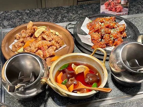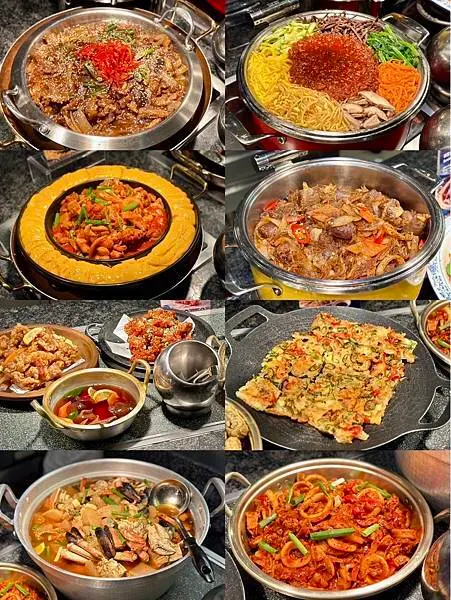 石鍋拌飯、春川辣炒雞、韓式血腸、辣炒魷魚、糖醋肉、海鮮煎餅…等,