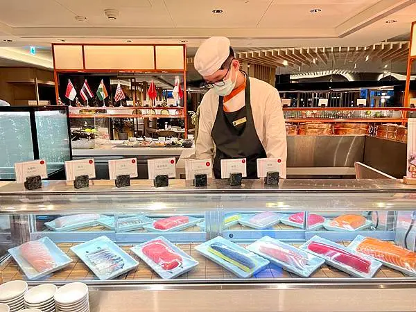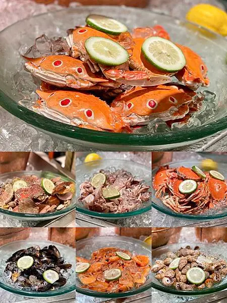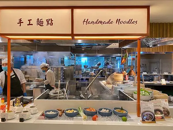 海鮮吧 日本料理餐檯 天婦羅串炸餐檯 鐵板料理餐檯 炭烤區 中式料理餐檯 麵點餐檯 港式經典美食 亞洲料理餐檯 沙拉前菜 繽紛甜點 飲品自助吧