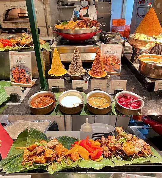 沙嗲、拉餅、香蘭葉雞…等,