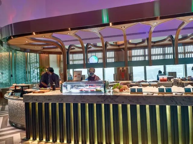 用餐區域分為幾個區塊,大片玻璃落地窗,透露些許自然光,可惜當天天氣有點陰天少了藍天白雲好光景