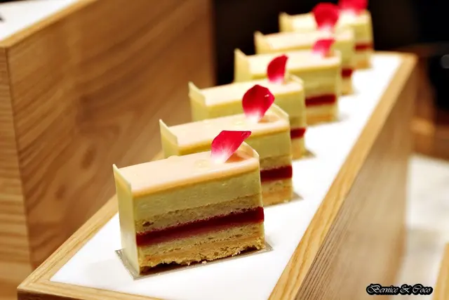擁有多種夾層的蛋糕色澤豔麗,醇香細緻的口感每口都是醉人的饗宴
