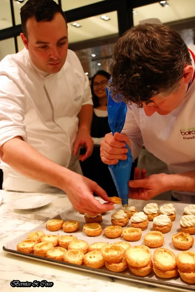 活動開始M.O.F法蘭克‧米歇爾主廚一一的講解台上的蛋糕甜點的內容和成份