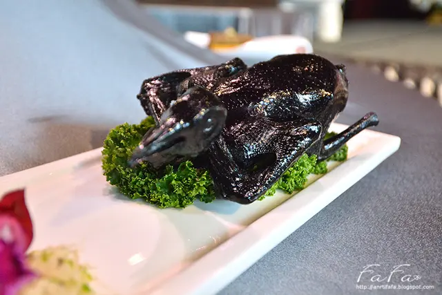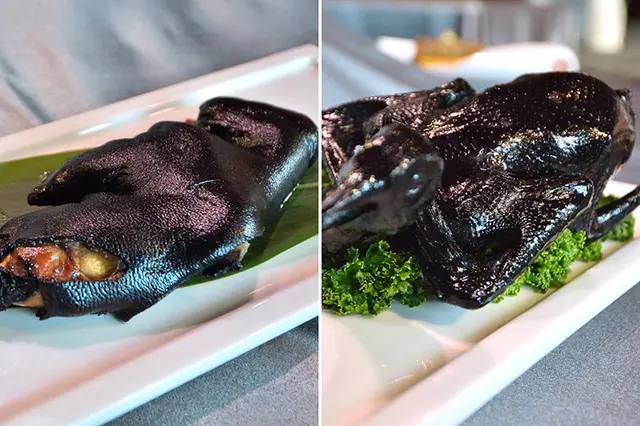 宋美齡最愛的一道黑官膳,黑豬前腿以烏樹汁浸泡15小時,再蒸15分鐘,