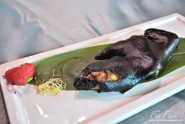 展示桌前有幾道黑官膳菜色是此次重點,美齡粽香賽熊掌,