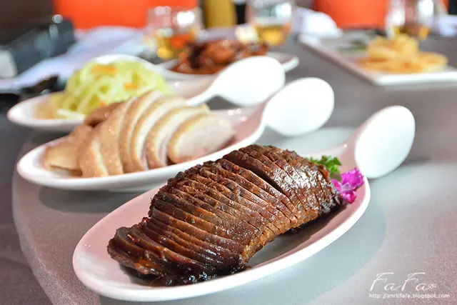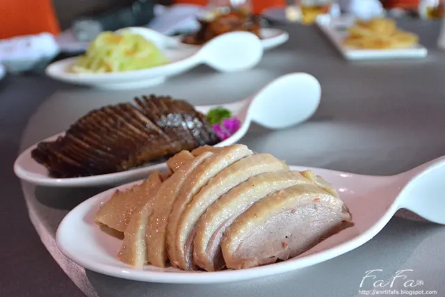 共和前菜南京鹹水鴨、大千六一絲、花椒萵筍絲、蔗糖燻魚塊、五香醬牛肉、醬醃脆蘿蔔