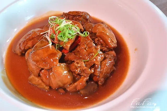 栗子綿泥香中帶甜,而雞肉在紅燒之後有著香噴噴的焢肉氣味及燻香,