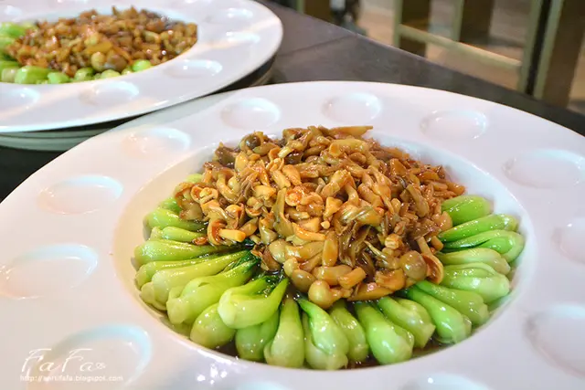 這邊是以上海菜作法,將靈芝菇、鳳尾菌..等新鮮菇類先煎後以雞湯燜煮,最後以雞湯勾芡。這密密麻麻的菌菇交疊一堆實為壯觀,菌菇滑Q彈有濃郁的蠔油醬香及淡淡胡椒香氣,