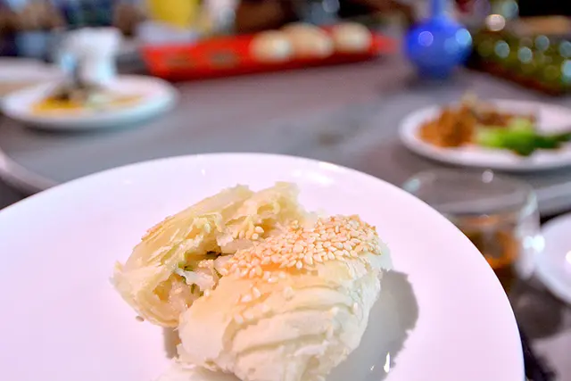 蘿蔔絲餅,以鴨油拌入麵粉增添香氣,外皮較脆弱,有很濃的芝麻香,