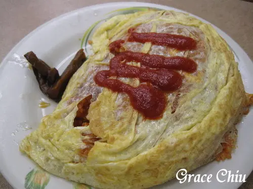 友人點的茄汁蛋包飯,蛋皮裡包著茄汁炒飯,茄汁味濃郁,炒飯稍偏濕潤但吃起來很順口.