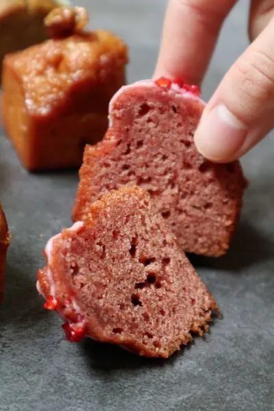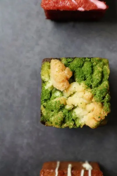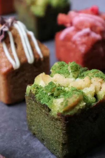 四種口味就屬抹茶最為花俏,酥頂、蜜紅豆與白玉麻糬簇擁著濕潤的磅蛋糕體,