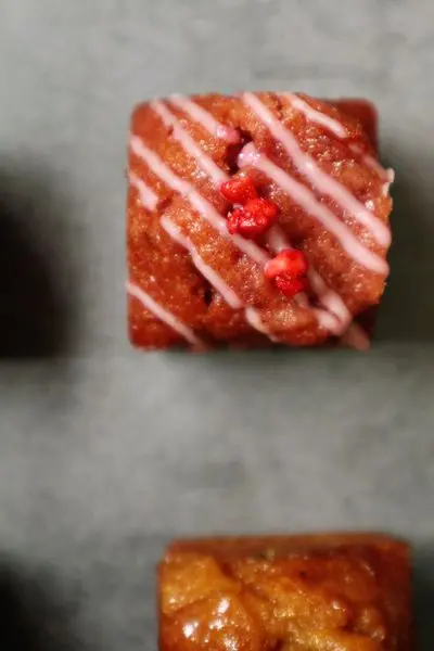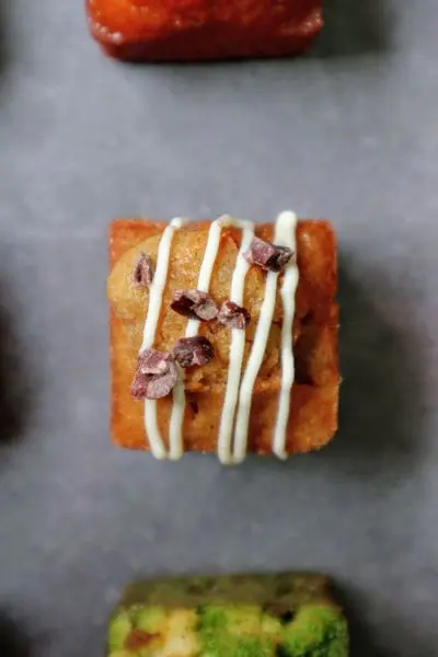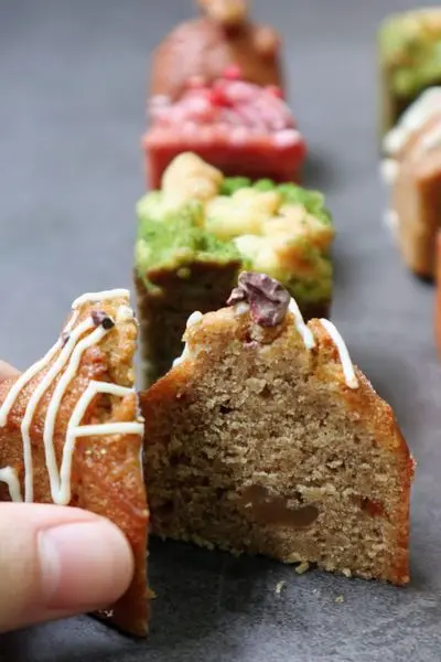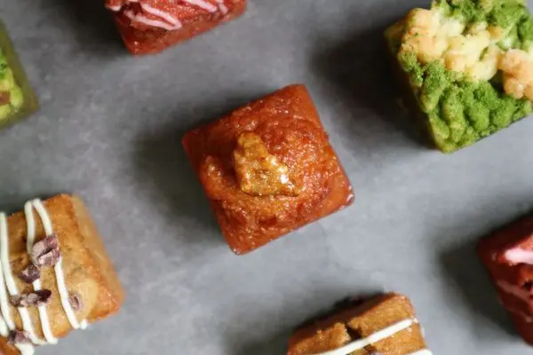 精緻的常溫燒果子小巧可愛,其實是一個個方塊型的磅蛋糕,