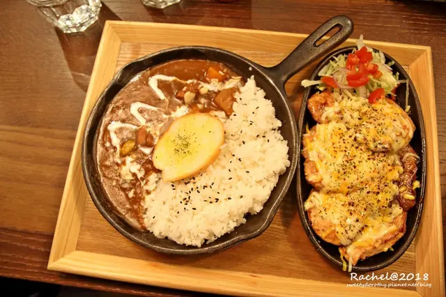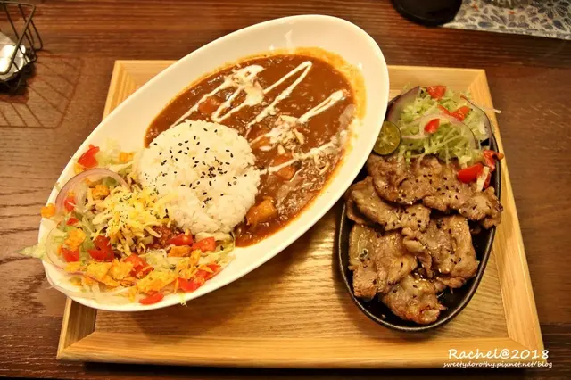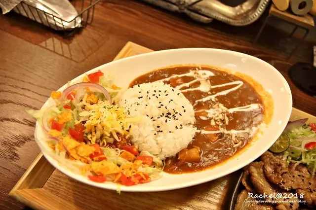 主餐的部分除了咖哩醬之外,還有搭著稍微辣的肉醬,沒想到口感意外的搭,菜絲有加深爽口的感覺,不會讓人覺得過膩,整體口感有點像是塔可飯。