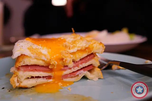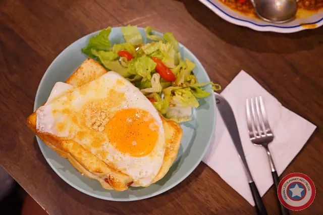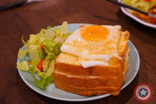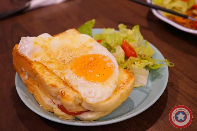 一般的考克太太上頭灑的很多起司 土司烤的略乾