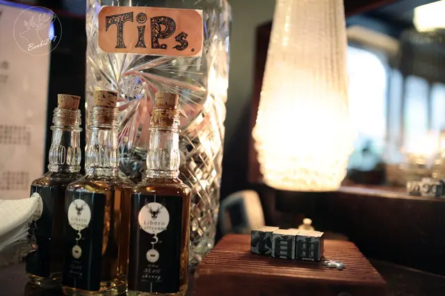 咖啡小自由除了咖啡外,也提供酒精飲料,所以可見到許多的酒瓶,也別有番味道。