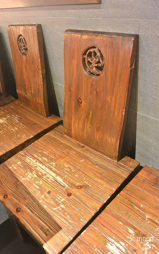 雖然坐位是兩人兩人結果中間還是有擺放椅子可以放包包頗方便的不過也第一次看到這樣很特別,店家的以子也很特別少見