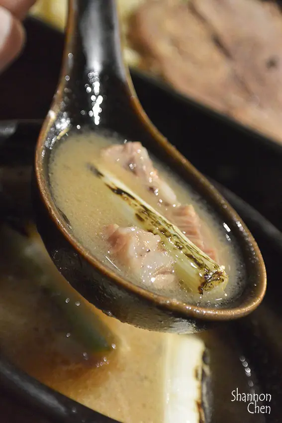 裡面還有肉塊呢,光這湯汁品嚐起來偏鹹了點但麵條沒什麼味道所以加起來還算OK!所以來這邊可以點用沾麵