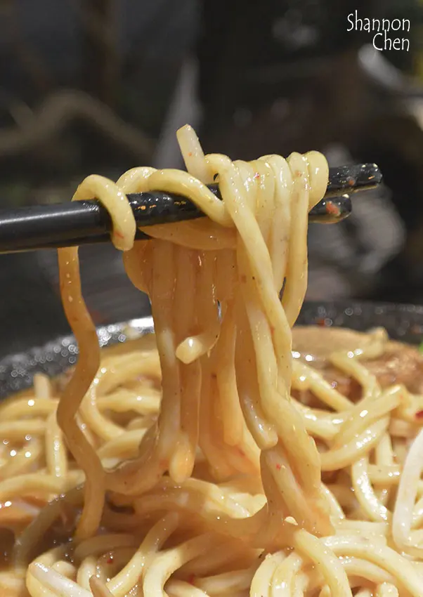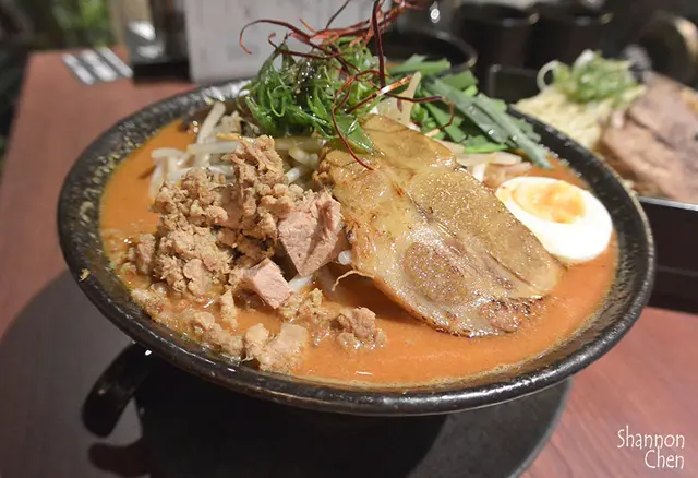 雖然品嚐起來的麻醬味道是可以接受的但吃到後面就無法了,份量也是經人的多以外上方還有超大一坨"豆芽菜",我是愛吃"已熟"的豆芽菜但以他們這樣川燙一下根本沒熟...這碗就算埋近去裡面也沒辦法熟透,所以生生的豆芽菜味令我覺得噁心只好全不挑出來以外麻醬的味道又不是我能接受的所以基本上此碗我吃的很辛苦且很痛苦,味道一就濃郁偏鹹以外麵條也是Q彈但是沒有沾麵的Q彈!所以會強烈建議若不喜歡麻醬或不能接受辣的朋友不要點用此款拉麵,我想其他款無辣的拉麵少了我不能接受的味道也算是優秀吧!