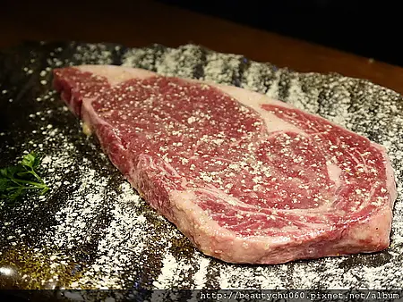 一塊牛排可以吃到二種口感的肉~~上緣處為肋眼 其它則為沙朗