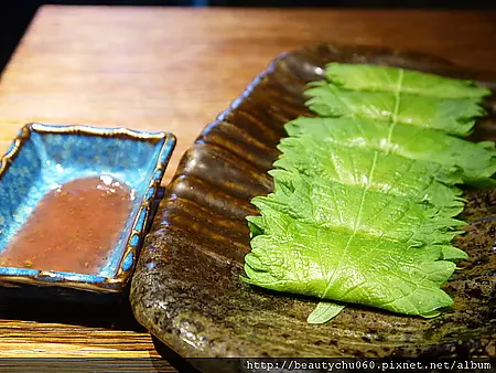 一旁的是紫蘇梅醬 烤好後就沾這醬吃!! 非常建議點來吃吃~~很特別!
