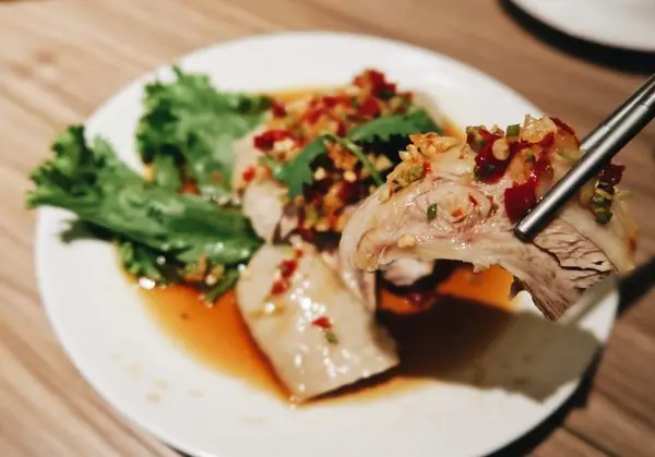 雞腿肉吃起來肉質新鮮軟嫩,搭配上酸辣醬汁非常夠味!
