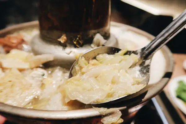 酸菜白肉鍋裡面的酸白菜是老闆手工醃漬,