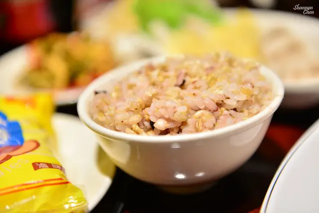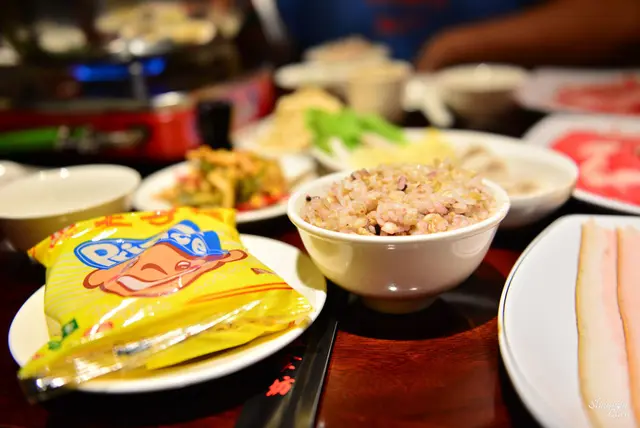 店加蠻推養生的概念,大汗鍋底是使用中藥材熬煮,這邊也是五穀米(我不愛)
