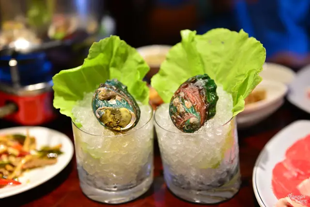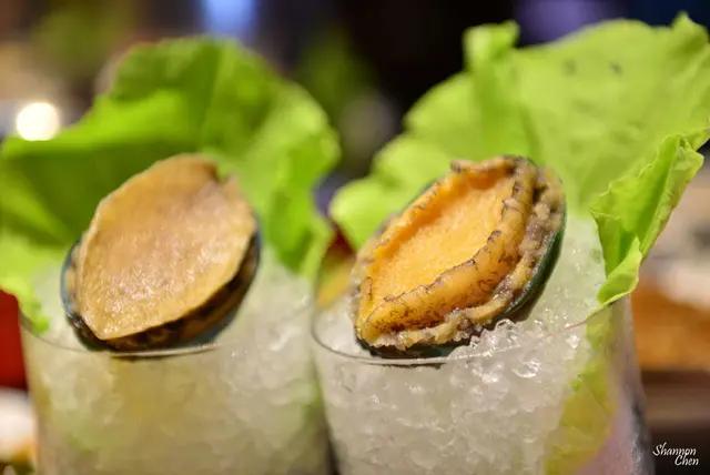 雖然說鮑魚很貴,但其實我不喜歡,所以我只咬一口Q談的口感沒什麼特別的味道,背後有的時候會有黑黑的(朋友說那是內臟,而他敢吃我不敢)可以自行處理掉就好,S則說好海味呀(鮮吧我猜)!!