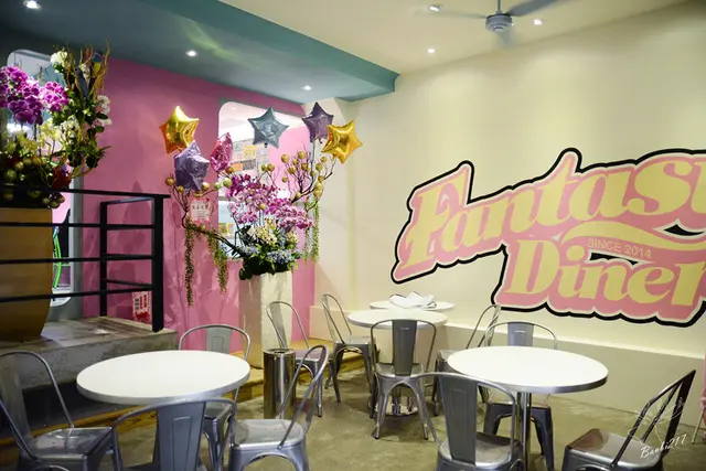 Fantasy Diner 潮流美式餐廳於2014/5/20試賣、6/14正式開幕,可搭乘捷運台電大樓站2號出口在往新生南路3段方向。店LOGO與吉祥物(看板娘)是個可愛的外太空卡通女孩人物,加上Tiffany藍及桃紅色的配色很特別搶眼。