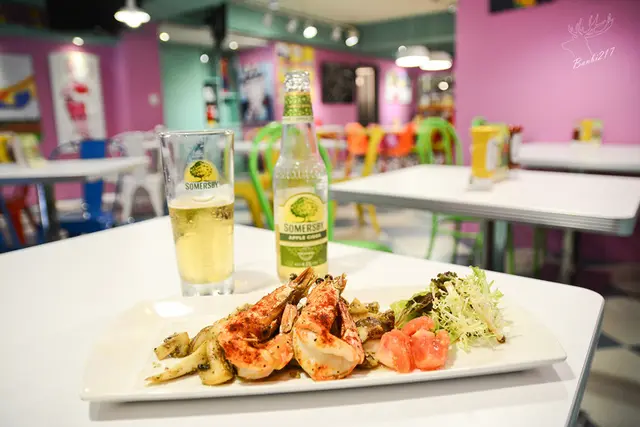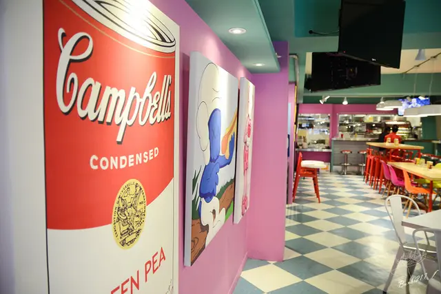 因為世足賽開打的關係,一些可收看電視轉播的運動餐廳正夯,位在台北市大安區Fantasy Diner 潮流美式餐廳,有別於一些燈光較昏暗的美式餐廳,店面裝潢風格是明亮且充滿可愛的卡通與公仔,椅子色彩上也很繽紛。