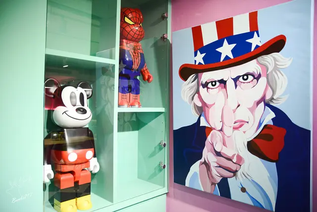 Be@rbrick的大型米奇及蜘蛛人公仔。