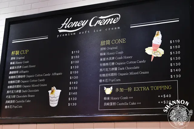 外面看板就擺了超多種搭配,不過朋友最想吃的就是蜂巢所以打算買蜂巢的那款