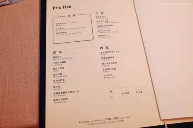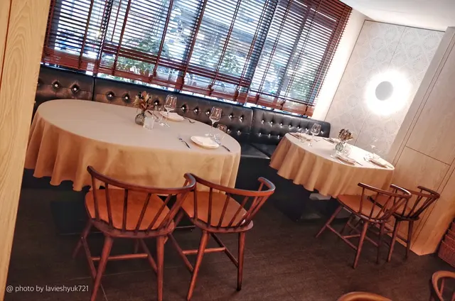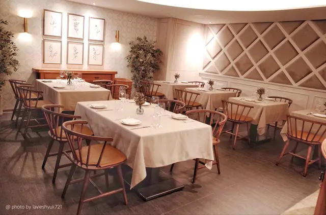 越過吧台區向內延伸,來到充滿法式優雅風情的用餐空間,柔和燈影下交織著溫柔樸質的木質與淺米舒心色系,還沒揭開料理序曲,心已不自覺沉澱療癒。