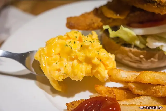 炒蛋可直接品嚐,也可夾入漢堡裡唷